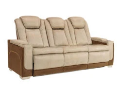 This sleek, ultra-modern power reclining sofa has it all. With head-to-toe comfort. This double reclining sofa is plush in all the right places and will support you for longer than you can binge-watch your favorite TV show. The middle seatback drops down into the convenient table-top with cup holders, the perfect resting spot for tablets and magazines. Features including wireless and USB charging, an adjustable headrest and LED light on the bottom rail make this the next generation of power recliners.