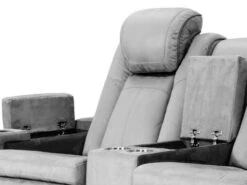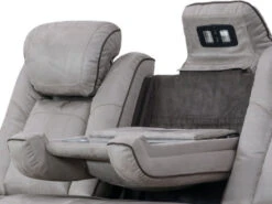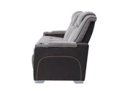 – Sofa features a drop-down table with storage pouch, 2 reading lights and 2-stage cup holders that convert to a flat surface for coffee mugs.