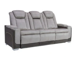 This sleek, ultra-modern power reclining sofa has it all. With head-to-toe comfort. This double reclining sofa is plush in all the right places and will support you for longer than you can binge-watch your favorite TV show. The middle seatback drops down into the convenient table-top with cup holders, the perfect resting spot for tablets and magazines. Features including wireless and USB charging, an adjustable headrest and LED light on the bottom rail make this the next generation of power recliners.
