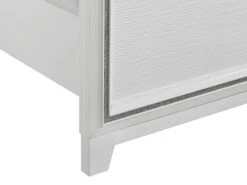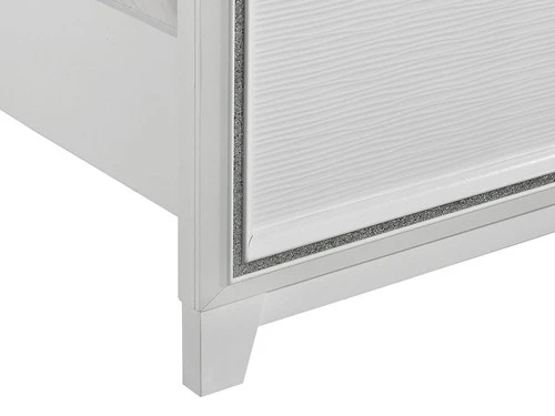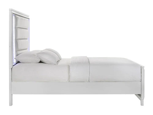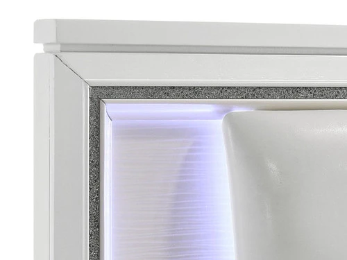 The Moondance Queen Bed is the perfect blend of modern and glamorous style. Constructed of solid and manufactured wood in a clean white finish. The panel headboard exhibits a rectangular silhouette with a chic faux leather headboard. Also includes controlled LED lighting that you can easily turn on and off. Showcases glimmering border strip accented along the bed. Assembly and a Box spring is required.