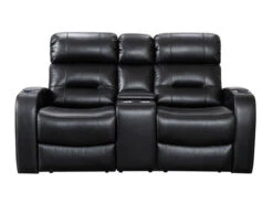 This Loveseat will be your favorite place to relax and enjoy with the Loveseat Power Recliner. This Loveseat comes in black upholstery with cross stitching , lattice detailing, with a modern look. When it comes to comfort, you’ll love the reclining bucket seat and its power-adjustable headrest that offers a custom comfortable angle for watching TV. It’s also convenient: illuminated cup holders, built-in power button with USB port on the controller, flip-up padded armrest with hidden storage. It is sure to become a hit in any home.