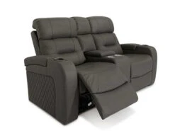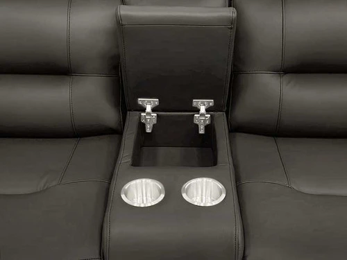 This Loveseat will be your favorite place to relax and enjoy with the Loveseat Power Recliner. This Loveseat comes in gray upholstery with cross stitching , lattice detailing, with a modern look. When it comes to comfort, you’ll love the reclining bucket seat and its power-adjustable headrest that offers a custom comfortable angle for watching TV. It’s also convenient: illuminated cup holders, built-in power button with USB port on the controller, flip-up padded armrest with hidden storage. It is sure to become a hit in any home.