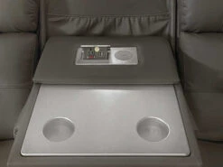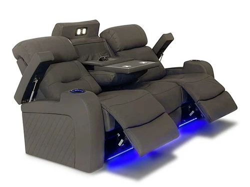 This Sofa will be your favorite place to relax and enjoy with the Sofa Power Recliner.. This Sofa comes in gray upholstery with cross stitching, lattice detailing, and a modern look. When it comes to comfort, you’ll love the reclining bucket seat and its power-adjustable headrest that offers a custom comfortable angle for watching TV. It’s also convenient: illuminated cup holders, built-in power button with USB port on the controller, flip-up padded armrest with hidden storage. It is sure to become a hit in any home.