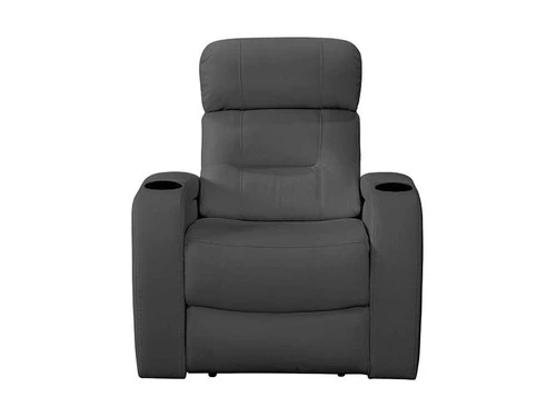 This Recliner will be your favorite place to relax and enjoy with the Power Recliner. This Recliner comes in gray upholstery with cross stitching , lattice detailing, with a modern look. When it comes to comfort, you’ll love the reclining bucket seat and its power-adjustable headrest that offers a custom comfortable angle for watching TV. It’s also convenient: illuminated cup holders, built-in power button with USB port on the controller, flip-up padded armrest with hidden storage. It is sure to become a hit in any home.