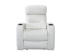 This Recliner will be your favorite place to relax and enjoy with the Power Recliner. This Recliner comes in white upholstery with cross stitching , lattice detailing, with a modern look. When it comes to comfort, you’ll love the reclining bucket seat and its power-adjustable headrest that offers a custom comfortable angle for watching TV. It’s also convenient: illuminated cup holders, built-in power button with USB port on the controller, flip-up padded armrest with hidden storage. It is sure to become a hit in any home.