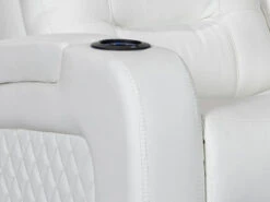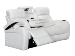 This Sofa will be your favorite place to relax and enjoy with the Sofa Power Recliner.. This Sofa comes in white upholstery with cross stitching, lattice detailing, and a modern look. When it comes to comfort, you’ll love the reclining bucket seat and its power-adjustable headrest that offers a custom comfortable angle for watching TV. It’s also convenient: illuminated cup holders, built-in power button with USB port on the controller, flip-up padded armrest with hidden storage. It is sure to become a hit in any home.