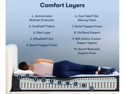 Experience ultimate sleep with our classic quilted-top mattress featuring an 825-coil density system. It offers a firm feel, striking the perfect balance of support and comfort. The 825-coil density system provides cushioning and cradling support for a restful sleep. With contouring memory foams, it targets pressure relief, relieving aches and pains. The premium Cool Twist Gel Memory Foam keeps you comfortably cool by regulating temperature. Designed to minimize partner disturbance, it ensures undisturbed sleep. Tailored for stomach and back sleepers, it provides ideal support and alignment. Invest in this mattress for exceptional sleep with comfort, support, and motion control.