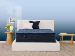 Featuring an 825-coil density system and zoned comfort, this classic quilted-top mattress offers firm support and pressure relief. The memory foams contour to your body, providing targeted comfort. Upgrade options are available for additional cooling layers and support. Topped with a cool-to-the-touch cover made with CoolFeel fabric, this mattress promotes a refreshing sleep environment. Designed to minimize partner disturbance, it is best suited for stomach and back sleepers.