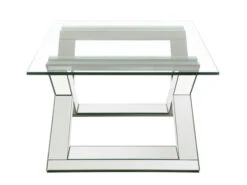 Elevate your living room with this superb modern glam coffee table. An eye-catching X-shaped pedestal base lends a chic, sophisticated expression. The flared X-shaped base is covered in a glistening mirror trim and tile, reflecting your seating and surrounding color palette. A silver crushed acrylic center glimmers from within the borders, creating a luxe look. The clear glass top is spacious enough for showcasing centerpieces and placing refreshment trays and snacks when hosting visitors.