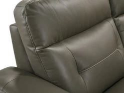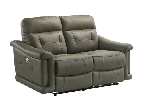 The Sammit Gray Leather Power Sofa is a contemporary style. This Sofa brings a reclining seat and top grain leather match. The armrest has a classic designed with streamlined type and comfort, impressing people with a sense of relaxation and luxury. Every part of this sofa attracts people to relax when you lie down and enjoy all its functions. Top Grain Leather Match and USB ports.