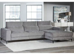 Enjoy contemporary style and room to relax with the comfortable and beautiful Sereno Gray Right Sectional. Accentuated by quilting and tufting detailing, the Sereno Sectional is wonderfully spacious in design while remaining elegant in aesthetic. This piece will give your living room an attractive element of warmth and character