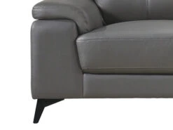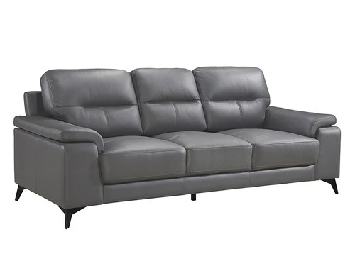This piece is modernly detailed with clean lines and bold arms, as well as slim legs. Styled for the modern home, the sofa blends the luxurious feel of leather with the comfort of plush seating. The top grain leather cover, with faux leather, enhances the sleek profile of the collection. Contoured pillow-top arms and black metal legs further enhance the modern stance. Relaxation is important and on this sofa you will feel very comfortable.