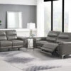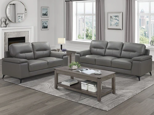 This set is modernly detailed with clean lines and bold arms, as well as slim legs. Styled for the modern home, the sofa set blends the luxurious feel of leather with the comfort of plush seating. The top grain leather cover, with faux leather, enhances the sleek profile of the collection. Contoured pillow-top arms and black metal legs further enhance the modern stance. Relaxation is important and on this sofa set you will feel very comfortable.