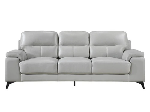 This piece is modernly detailed with clean lines and bold arms, as well as slim legs. Styled for the modern home, the sofa blends the luxurious feel of leather with the comfort of plush seating. The top grain leather cover, with faux leather, enhances the sleek profile of the collection. Contoured pillow-top arms and black metal legs further enhance the modern stance. Relaxation is important and on this sofa you will feel very comfortable.