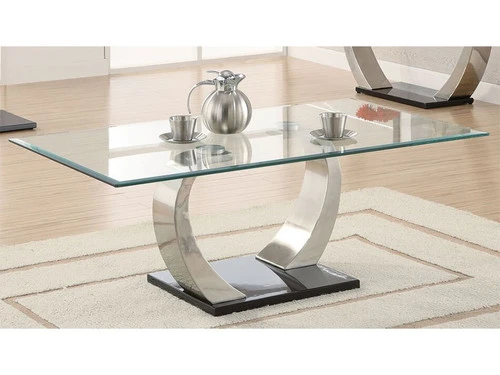 The Shearwater occasional ultra modern table group features a floating glass top, that gives a big space sensation, and a special large scaled satin finish metal support with high sheen black base.