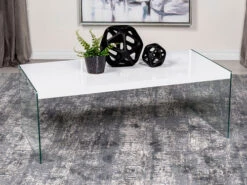 This coffee table boasts a rectangular shape, with clean lines and a minimalist aesthetic. The sides of the table are made of transparent crystal, creating a stunning visual effect as they allow you to see through the table and showcase its contents. The crystal sides are flawlessly smooth and polished, providing a high-quality and luxurious appearance.