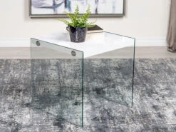 Whether you’re hosting a gathering or simply enjoying a quiet evening at home, this end table with crystal sides and a white top will undoubtedly add a touch of modern sophistication and timeless beauty to your surroundings.