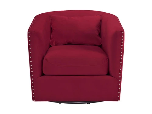 The Stanton Swivel Chair is going to be a knockout in your home! This chair features a thick, seat cushion that is comfortable and will have you never wanting to get out of this chair. Chrome, nail head trim is outlined along the edges of the chair, instantly adding extra flair to this already stylish piece. The chair also comes with one pillow that matches the transitional colors that the chair comes in. Add this swivel accent piece to your home today for a look that will never go out of style!