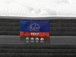 The Super Rest King Mattress provides consistent comfort, helping you get a restful sleep. Pocketed coil technology that provides flexible support, with energy block foam that isolates motion between sleepers. Its air-cooling memory foam layer keeps your mattress fresh and cool while moving heat and moisture away, while contouring to your body. Finished with a tack and jump quilt design.