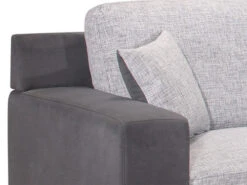 This comfortable two toned sectional will be the perfect complement to your living space. Finished in light and dark grey finish it features spacious seating, angled design with a plush back and cushioned seats. Sleek chrome metal legs and square arms complete this contemporary look.