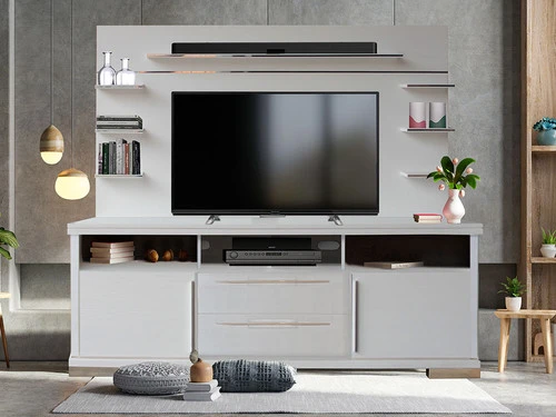 Entertainment unit: 80″ W x 17″ D x 43.3″ H