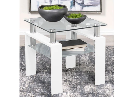 This crystal end table is a stunning combination of elegance and functionality. The table features a transparent crystal tabletop, creating a sense of lightness and sophistication. The crystal material provides a clear view of the lower shelf and adds a touch of luxury to the overall design