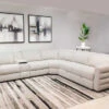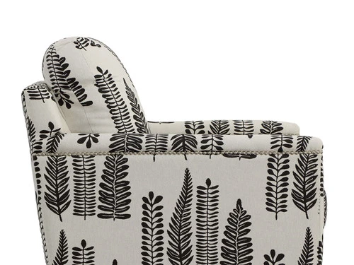 Make a design statement with this Transitional Modern chair, micro linier silver studded arm details along with multiple sized collection. Bold black and white accented graphics and coordinating chair options make this a perfect fit for any modern living environment.