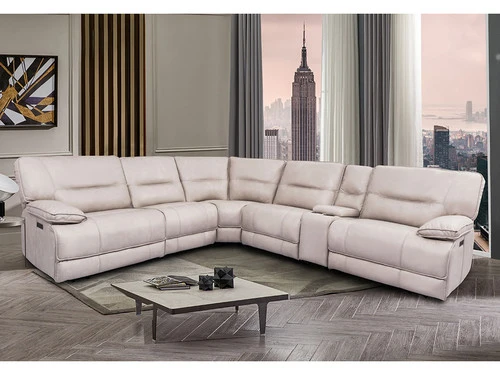 The Volos Sectional has top quality top grain leather match upholstery and great comfort make this sofa a perfect piece for your living room. Complete with power recliners and electric headrest, cup holders, and roomy storage console, this couch is perfect for unwinding and relaxing with friends and family.Includes USB port. One(1) console.
