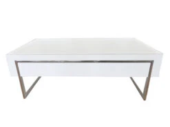 U-shaped legs with metal finish give this piece a lightweight aesthetic and a unique sense of visual balance. Two single drawer makes it easy to keep essentials tucked away, while an spacious tabletop offers the opportunity to display favorite decorations.