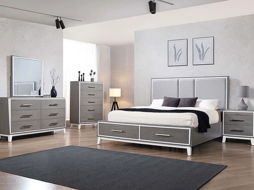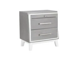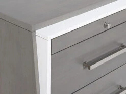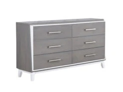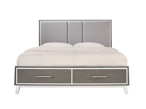 Create a sleek, modern look with this contemporary style Bedroom Set. The Zephyr Bed Set features 2 drawers in bed, a two-tone white/gray finish and is constructed of rubberwood solids and veneer.. Casegoods features drawers for storage and a white and gray two tone finish, this collection has everything you need to elevate any bedroom space.