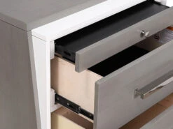 Create a sleek, modern look with this contemporary style Bedroom Set. The Zephyr Bed Set features 2 drawers in bed, a two-tone white/gray finish and is constructed of rubberwood solids and veneer.. Casegoods features drawers for storage and a white and gray two tone finish, this collection has everything you need to elevate any bedroom space.